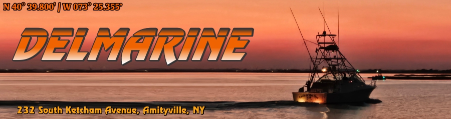 N 40 degrees 39.800 minutes by W 073 degrees 25.355 Minutes DELMARINE 232 Ketcham Avenue, Amityville, NY Link to HOME page, Link to ABOUT page, Link to BOATS page, Link to SERVICE page, Link to PARTS page, Link to BOATYARD page, Link to DOCKAGE/STORAGE page, Link to GALLERY page, Link to CONTACT page. Welcome to Delmarine