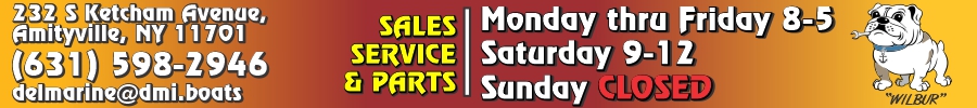 232 S Ketcham Avenue, Amityville, NY 11701 (631) 598-2946, delmarine@dmi.boats, Sales Service & Parts Monday thru Friday 8-5, Saturday 9-12, Sunday Closed. Delmarine: Established 1956 |
