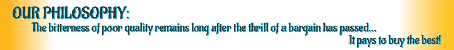 Our Philosophy: The bitterness of poor quality remains long after the thrill of a bargain has passed... It pays to buy the best!
